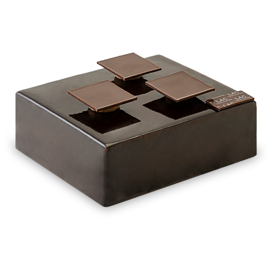 Un sablé au praliné croustillant est déposé sur une dacquoise moelleuse aux amandes et noisettes le tout sublimé par une mousse au chocolat noir Pérou 70%.